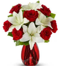 Celebrate a love that stands the test of time with the Lasting Romance Valentine’s Arrangement, a breathtaking bouquet designed to capture hearts. This stunning display features luxurious red roses—the ultimate symbol of passion—paired with vibrant pink lilies, soft blush carnations, and radiant red mini carnations, all nestled among lush greenery and delicate baby’s breath for a touch of elegance.