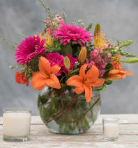 Although the actual bouquet may not precisely match the photo, its temperament will. Occasionally, substitutions of flowers and/or containers happen due to weather, seasonality and market conditions which may affect availability. If this is the case with the gift you’ve selected, we will ensure that the style, theme and color scheme of your arrangement is preserved and will only substitute items of equal value or higher value.
