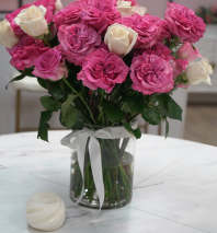 "A delicate and vibrant arrangement that combines the softness of pink tones with the intensity of fuchsia, evoking romance, joy, and freshness. Each carefully selected flower creates a visual harmony that conveys tenderness and energy, ideal for celebrating love, friendship, or special moments that deserve a touch of color and elegance."