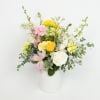 A thoughtful floral vase arrangement featuring soft pastels and cheerful yellow blooms, designed to share warmth, positivity, and well wishes for any occasion.