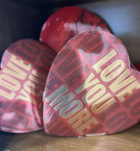 Heart shaped box with our "Rozella's" logo, filled with red roses.