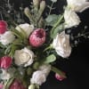 A joyful mix of soft pinks, creamy whites, and fresh greenery arranged with natural movement and warmth. Love in Bloom features blush tulips, ivory roses, and seasonal textural blooms for a design that feels romantic, optimistic, and full of life—a fresh and heartfelt expression of love.
