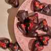 Hearts for Valentine's Day! Even better, 70% dark chocolate hearts with freeze-dried strawberries and raspberries in a beautiful red and gold box.