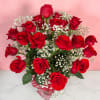 2 Dozen Red Roses Vased by Savilles Florist is a spectacular showcase of 24 red, long-stemmed roses, presented with baby's breath filler and luscious greens, brought together in a glass vase with a red bow. This arrangement is an incredible display, sure to make a statement and delight anyone that receives one of these fantastic arrangements.