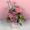 The Bunny Blooms Mug by Savilles Florist is a colorful display of spring flowers, arranged in an adorable keepsake Easter Bunny mug. Flowers include daisies, carnations, and buttons in various shades of pink, lavender, and green, with baby's breath filler adding a light and airy touch. This mug is a super cute gift to welcome in the spring, and the keepsake mug can be enjoyed year after year!