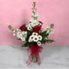 The Classic Romance Bud Vase combines cute and classy into one lovely design! White and red flowers like classic roses, stock, and yin yang daisies are presented in a bud vase with a red bow. This arrangement is a perfect reminder to send to someone to show that you love them!