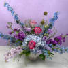 A lush, flowing arrangement of cool-toned blooms designed to feel peaceful and effortlessly elegant.