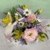 Easter Morning Meadow by Savilles Florist is the prettiest Easter Bunny themed arrangement out there! Crafted inside an adorable white bunny container with a built in pink bow, this design features beautiful pastel flowers including yellow alstroemeria, pink lisianthus, purple statice, and spring daisies. This arrangement is a perfect choice to celebrate Easter in a stylish way, and the cute little bunny container can be kept and reused however you'd like after the flowers are gone!