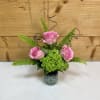 A playful nod to the classic monster, this Frankenstein’s Monster mason jar arrangement combines vivid green hydrangea with soft pink roses for an unexpectedly sweet twist on spooky. Finished with black glittery accents and fresh greenery, it’s the perfect mix of creepy-cute and Halloween charm. Display it on a desk, gift it to a horror-movie fan, or add a little “electric” whimsy to your October décor, no lightning bolts required.