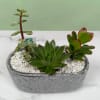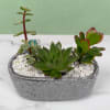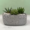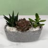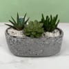 A compact, modern succulent planter that makes a calm, contemporary gift for housewarming, a desk, or a simple thank-you. This planter brings together three different succulent plants in a gray oval concrete planter and finished with crisp white decorative stones for a minimalist look. We will pick the best succulents we have in store to give you a unique planter that's like no other!
