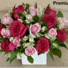 Hot Pink and Light Pink Rose Arrangement in Square Vase – 18 Stems