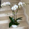 Elegant 3 Orchids Plants (Select) in white arranged in a ceramic container. A timeless and graceful gift for any occasion.