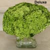 Green Hydrangeas beautifully arranged in a modern glass square vase.