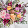 Meet Confetti — a celebration in bloom. This joyful, garden-style arrangement features a lush mix of premium florals in soft blush, peach, lavender, and berry tones, layered with airy greenery and textured accents for a perfectly undone look. Designed to feel fresh, fun, and full of life, Confetti brings instant happiness to any space.