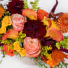 Our Fall Breeze arrangement showcases vibrant marigolds, roses, dahlias, and calla lilies in warm orange, gold, and burgundy tones featured in 4" Ivory Astrid Ceramic pot. Accented with fall foliage and lush greenery, it’s the perfect seasonal centerpiece for Thanksgiving, gatherings, or gifting.