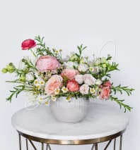 Although the actual bouquet may not precisely match the photo, its temperament will. Occasionally, substitutions of flowers and/or containers happen due to weather, seasonality and market conditions which may affect availability. If this is the case with the gift you’ve selected, we will ensure that the style, theme and color scheme of your arrangement is preserved and will only substitute items of equal value or higher value.