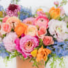 Perfect for any occasion, Birthday, New Baby, Anniversary, Thank you or Just Because. A happy and vibrant design full of feel good vibes filled with a bright, variety of seasonal blooms featured in our Kendal Terra-Cotta vase 4.5" x4.5" (Arrangement is Full Sided).