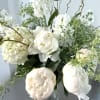 Celebrate the soft, romantic textures of the season with this breathtaking display of premium white peonies. This arrangement is a masterclass in monochromatic elegance, blending the "queen of flowers"—the peony—with airy, textural accents to create a look that is both modern and timelessly sophisticated.