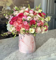 Housed in a chic, reusable container, it makes a perfect centerpiece for any occasion be it a gift or a treat for yourself. Elevate your decor with this captivating arrangement that brings joy and sophistication to your home or office. Order yours today and let the beauty of flowers inspire you!