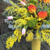 Mimosa is only available a few weeks a year. And when it's finally here, it sure knows how to make an entrance. Fragrant and vibrant, these bright yellow flowers are sure to make its impact in any arrangement. Order Mimosas in the Mornings to lighten up your space. Light pink tulips, High Magic roses, and orange snapdragons marry symbiotically to create an arrangement that lifts your spirits and freshen your space.