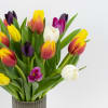 Bright, fresh and fun. This happy vase of mixed colored tulips is guaranteed to deliver rainbow-inspired joy into someone’s day.