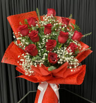 Natural Premium roses glitterized and put together to create this unique and impressive style. Comes in many colors.