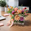 This peach and pink flower arrangement is ideal for desks, tables, and home décor, offering a fresh, elegant look that complements any space. Designed by our local florists using seasonal blooms, Blushing Hearts is a beautiful way to celebrate love, appreciation, and meaningful moments.