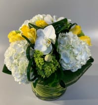 In some instances, the florists’ photo may represent an overall theme or look and include a one-of-a-kind vase which cannot be exactly replicated. Although the actual bouquet may not precisely match the photo, its temperament will. Occasionally, substitutions of flowers or containers happen due to weather, seasonality and market conditions which may affect availability. If this is the case with the gift you've selected, the local florist will ensure that the style, theme and color scheme of your arrangement is preserved and will only substitute items of equal or higher value.