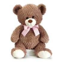 Plush Valentine red panda with a red heart. On the heart, there is the embroidered message, "Be Mine" in white. The panda has dark brown fur around its eyes and ears, and a dark brown and white striped tail.