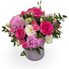 Bright, hot pink roses and lush pink peonies take center stage in this Mother's Day flower arrangement, paired with pink mini carnations, delicate lisianthus-style white guaranteed blooms, and wisps of rice flower for a soft, textured contrast. Designed as a garden-style, rounded bouquet, the vivid magenta and pale blush palette reads romantic and cheerful-the kind of gift that makes the person you're thinking of feel celebrated and adored.