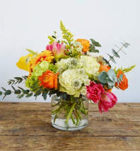 In some instances, the florists’ photo may represent an overall theme or look and include a one-of-a-kind vase which cannot be exactly replicated. Although the actual bouquet may not precisely match the photo, its temperament will. Occasionally, substitutions of flowers or containers happen due to weather, seasonality and market conditions which may affect availability. If this is the case with the gift you've selected, the local florist will ensure that the style, theme and color scheme of your arrangement is preserved and will only substitute items of equal or higher value.