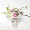This is an elegant and fun floral design, inspired by its vessel – a modern white ceramic vase with a wink and a heart.