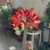 Amaryllis are rewarding, easy-care houseplants that brighten up a northern winter. Barbados blooms are deep red with a snowy center. Tin may be red or gold.
