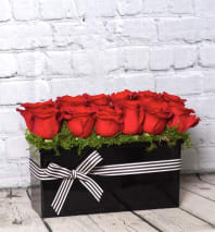12 long stem roses arranged with fragrant stargazer lilies for the ultimate ‘I love you’ bouquet. Stands approximately 22" tall and 14" wide.