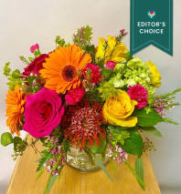 In some instances, the florists’ photo may represent an overall theme or look and include a one-of-a-kind vase which cannot be exactly replicated. Although the actual bouquet may not precisely match the photo, its temperament will. Occasionally, substitutions of flowers or containers happen due to weather, seasonality and market conditions which may affect availability. If this is the case with the gift you've selected, the local florist will ensure that the style, theme and color scheme of your arrangement is preserved and will only substitute items of equal or higher value.