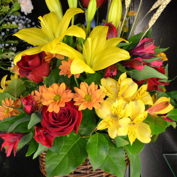 This very vibrant bouquet was an anniversary gift. Nice touch that they put in the amount of roses matching the years of marriage on the card. I was happy with the fair prices and selection. I don't like to overpay and acquire yet another vase we don't need. The flowers look great in the red mason jar, it will be reused for sure. Free delivery was a major player in my decision aside from trying to stay local. Thanks for brightening the day.