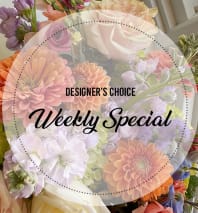 Each arrangement is custom made. In summer we use locally grown flowers. After summer we use a farm in South America