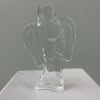 Soft pink gerbera daisies and peach-pink roses surround a clear glass angel keepsake in this sympathy flower arrangement, creating a gently uplifting display perfect for funeral services or moments of remembrance. The combination of lavender and white carnations with tall purple stock lends a serene, comforting palette that quietly expresses care and condolence without being somber. This arrangement also suits holiday remembrances or a thoughtful gift to honor someone's memory any time of year.