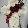 FUNERAL/SYMPATHY ARRANGEMENT ~ Beautifully designed crosses designed specifically for your loved one. We will custom design the piece based on your preference of size, flowers, style. Standard as shown in first picture includes a mix of Carnation, Daisies, Roses and Fuji mums. The flowers and colors on the arrangements in the pictures below can be changed and customized to your liking.