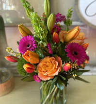 In some instances, the florists’ photo may represent an overall theme or look and include a one-of-a-kind vase which cannot be exactly replicated. Although the actual bouquet may not precisely match the photo, its temperament will. Occasionally, substitutions of flowers or containers happen due to weather, seasonality and market conditions which may affect availability. If this is the case with the gift you've selected, the local florist will ensure that the style, theme and color scheme of your arrangement is preserved and will only substitute items of equal or higher value.