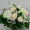 Desire a floral arrangement designed elegantly in a simple color palette? This arrangement designed in a glass bubble bowl included hydrangea, roses and more in a simple and clean color scheme - so chic!