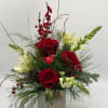 This festive arrangement showcases classic red roses, creamy blooms, winter greenery, and pinecones for a timeless Christmas look. A charming cardinal adds a touch of seasonal magic. Designed in a wooden box, it’s perfect for gifting or brightening your holiday table. Seasonal substitutions may apply.