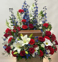 A graceful and traditional piece appropriate for a funeral service. An arrangement for the service with something the family will be able to take home and hold on to with the memory of their loved one.