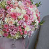 The composition is combined with delicate pink and white shades. This composition is suitable not only for a woman, but also for a man. It is appropriate to give it to a partner, as there is a special restraint in it, but it is also suitable as a gift to a loved one who loves deep shades.