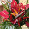 Mixing tropical flowers like Anthurium can create a vibrant and exotic arrangement. Anthuriums have distinctive heart-shaped blooms and glossy leaves. Incorporating them with other tropical flowers like bird of paradise, and heliconias can result in a visually appealing and lively display. The contrasting shapes and colors of these flowers can add a touch of the tropics to any setting.