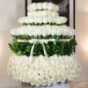 A breathtaking display of 500 roses arranged in a towering masterpiece, reminiscent of a majestic floral tower. These celebrity blooms weave together seamlessly, forming a structure that captivates with its beauty. The design, resembling a colossal birthday cake, adds a touch of whimsy to the elegance, making it a truly stunning and unique floral arrangement.