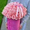 Pink roses are a symbol of tenderness, elegance and sophistication. A bouquet of these beautiful flowers expresses gratitude, sympathy and tender emotions. This arrangement will be a great decoration for the interior of your home.