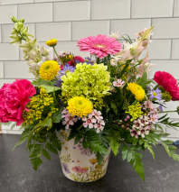 In some instances, the florists’ photo may represent an overall theme or look and include a one-of-a-kind vase which cannot be exactly replicated. Although the actual bouquet may not precisely match the photo, its temperament will. Occasionally, substitutions of flowers or containers happen due to weather, seasonality and market conditions which may affect availability. If this is the case with the gift you've selected, the local florist will ensure that the style, theme and color scheme of your arrangement is preserved and will only substitute items of equal or higher value.