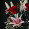 Blooming Love is a timeless expression of romance, featuring vibrant red roses nestled among soft pink lilies, delicate accent blooms, and lush greenery. This elegant arrangement blends passion and grace—making it the perfect gift for anniversaries, Valentine’s Day, or any moment that calls for heartfelt beauty.