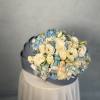 The "Blue Cradle for Baby Boy" flower arrangement features a delightful combination of soft blue Lisianthus, cheerful spray roses, and fluffy blue and white Hydrangeas, beautifully symbolizing the joy of welcoming a new baby boy. The elegant design and soothing colors make it a perfect centerpiece for celebrations honoring the little one.